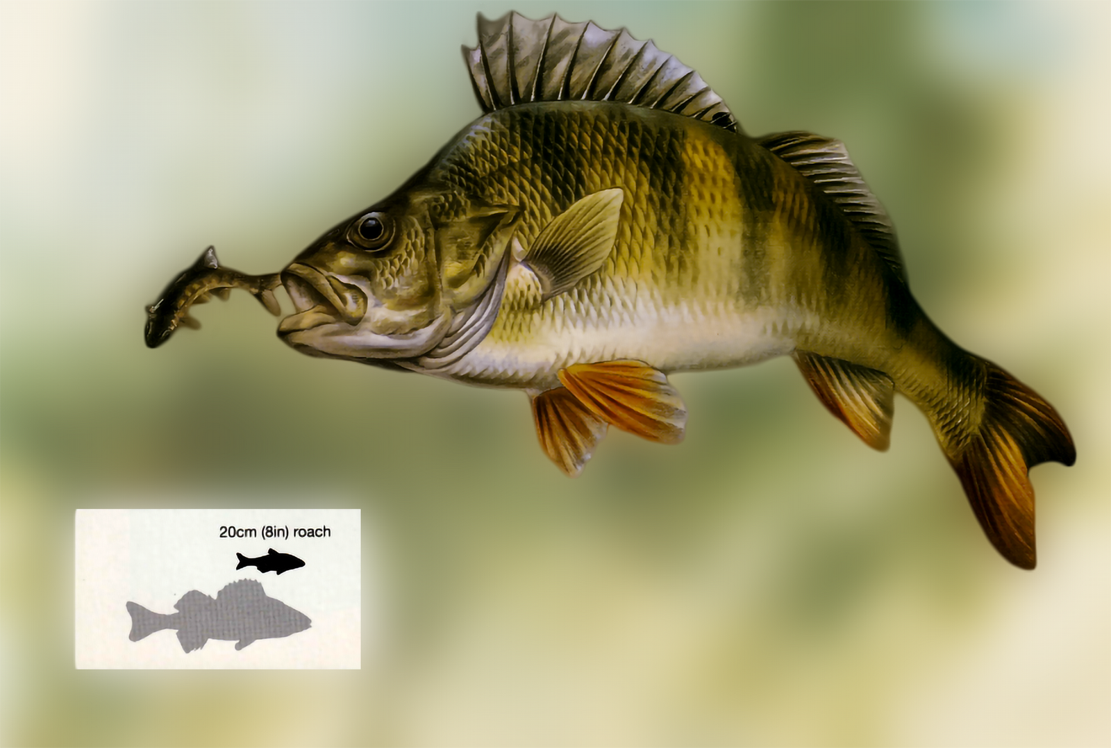 Perch catch their prey by biting the tail repeatedly from behind and below to restrict swimming. Characteristically the capture and swallowing of the Perch's prey is always tail first.