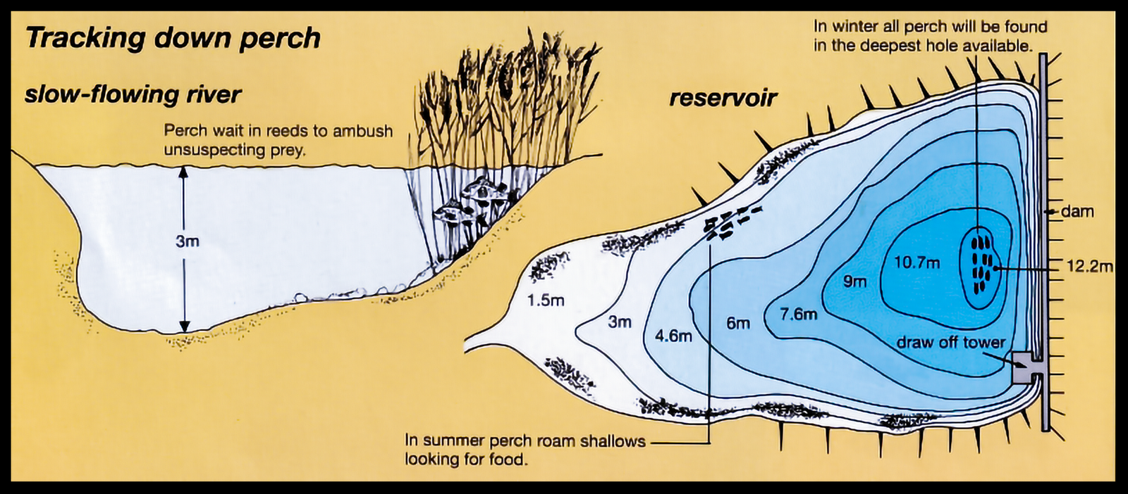 Perch prefer slow-moving or still waters with a good head of small prey species.